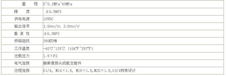 PT218壓力傳感器參數(shù):