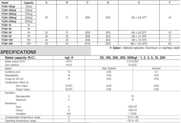 FCM1-50KG、FCM1-100KG、FCM1-200KG、FCM1-300KG、FCM1-500KG、FCM1-1T、FCM1-2T、FCM1-3T、FCM1-5T、FCM1-10T、FCM1-20T、