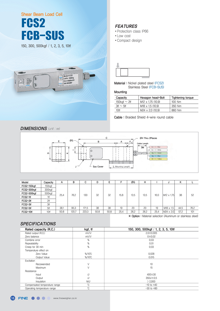 除韓國Fine稱重傳感器 FCS2-300KG型號之外的其它熱門型號: