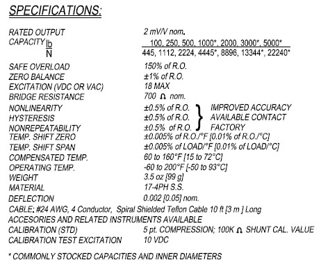 ● 量程 444.8, 1112, 2224, 4448, 8896, 13344, 22240 N