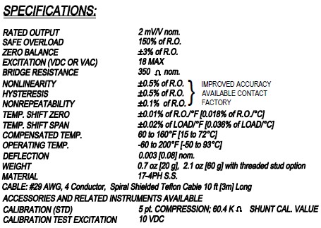 美國FUTEK LLB350稱重傳感器技術參數圖: