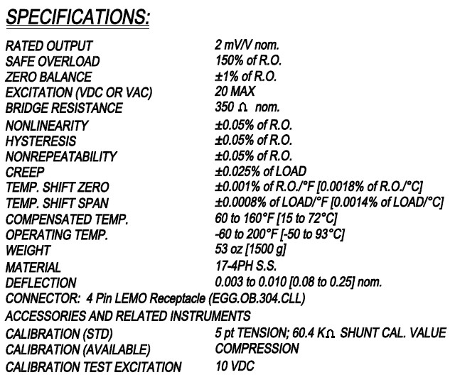 美國FUTEK LSB400稱重傳感器技術參數圖: