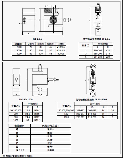 S型傳感器: TSC-50 TSC-100 TSC-200 TSC-300 TSC-500 TSC-1000