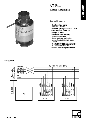 德國HBM C16iC3/20T稱重傳感器技術參數: