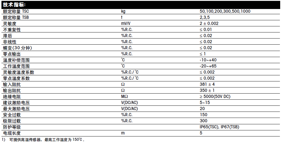 TSC-300稱重傳感器 技術(shù)參數(shù):