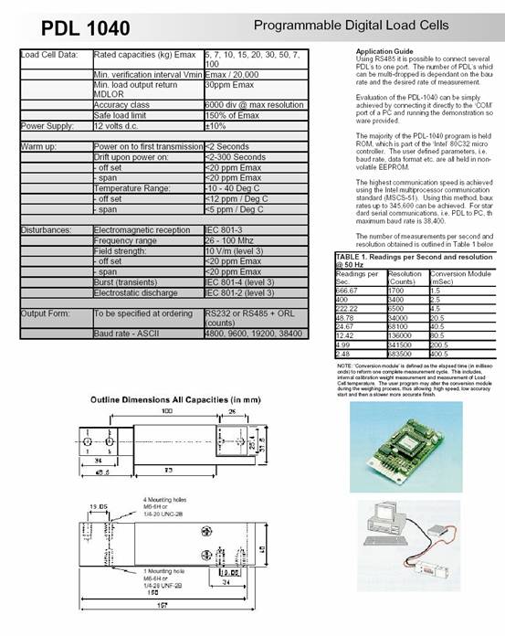 美國Tedea-Huntleigh 1040-50kg稱重傳感器技術參數圖:
