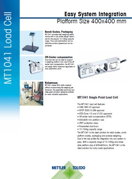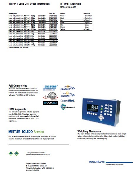 以上是瑞士梅特勒托利多MT1041-15稱重傳感器的產品資料,如需了解詳細信息,請登錄網址:http://m.tjtfgt.com.cn,找銷售三部找高工程師。