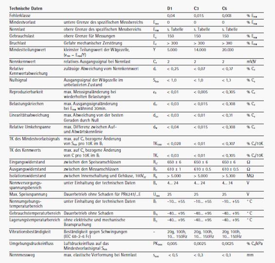 德國sartorius PR6241/22C3稱重傳感器技術參數: