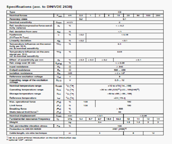 德國HBM C2/1T稱重傳感器技術參數圖: