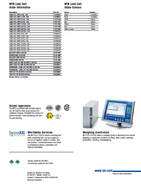 瑞士梅特勒托利多MTB-200稱(chēng)重傳感器具體型號(hào)量程: