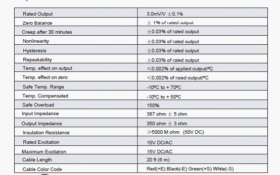 美國Transcell SBS-1.5稱重傳感器技術參數圖:DQv廣州南創電子科技有限公司