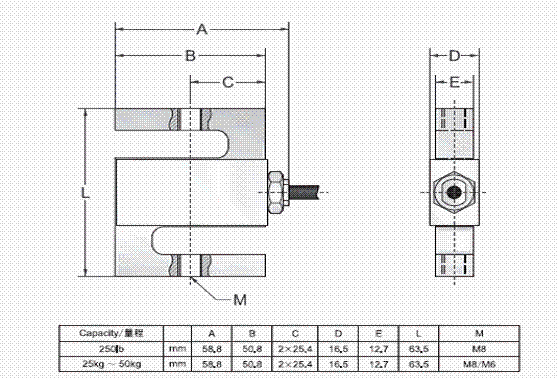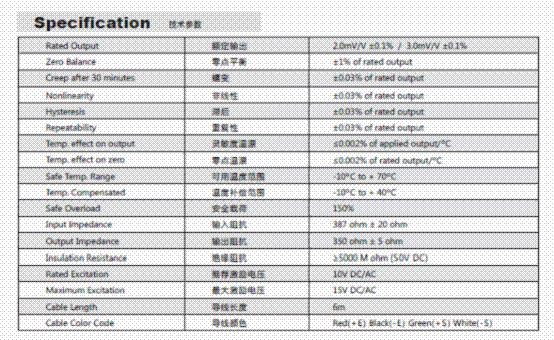 美國(guó)Transcell BSA-50kg稱重傳感器技術(shù)參數(shù)圖:
