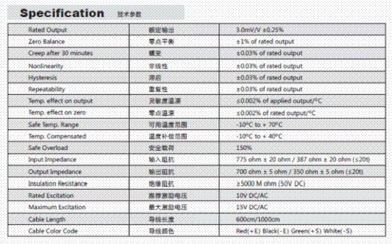 美國Transcell DBSL-3T稱重傳感器技術參數圖:Rvt廣州南創電子科技有限公司