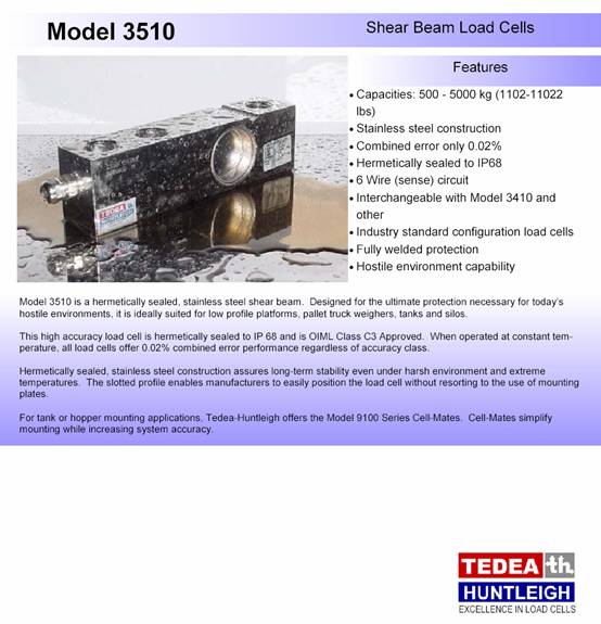 Tedea-Huntleigh 3510單點式稱重傳感器所有型號: