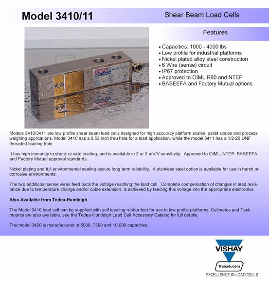 美國TEDEA-HUNTLEIGH 3410-2500LB稱重傳感器技術參數圖:
