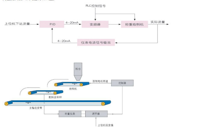 Is3廣州南創(chuàng)電子科技有限公司自動配料控制系統(tǒng)工作原理:Is3廣州南創(chuàng)電子科技有限公司自動配料控制系統(tǒng)在運行使用時物料到配料皮帶秤,配料皮帶秤的重量信號和速度信號進(jìn)入控制儀表,并在儀表內(nèi)部進(jìn)行處理和顯示,同時,輸出與流量成正比的4~20mA電流信號到智能調(diào)節(jié)器,調(diào)節(jié)器根據(jù)用戶設(shè)定的PID參數(shù)及理想控制值,輸出4~20mA電流到電機(jī)控制器,并由其調(diào)節(jié)給料機(jī)速度快慢,從而控制給料量。