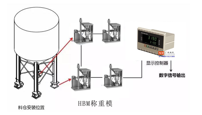 而且客戶提出需要一種測量精準確,安裝維護方便,的更加可靠的測量方案,廣州南創給他提供了使用HBM的C16M的稱重模塊(量程有:20T,30T,40T,60T,100T,200T,400T)   方案、該方案不同于稱重方法,更適合大容量儲料罐使用。