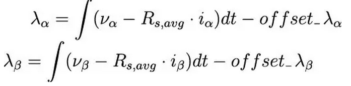 磁鏈首先在靜態 (a,b) 幀按照反電動勢電壓時間積分來計算: