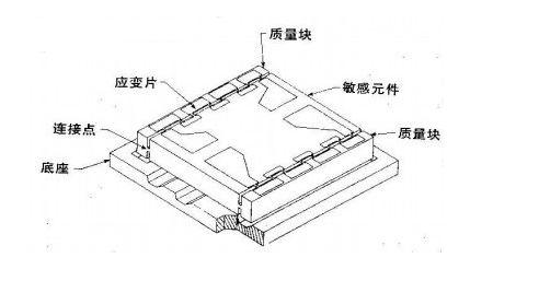 新式的壓阻式加速度傳感器的結構,它是由整塊硅晶體制成的。它以硅壓阻應變片作為敏感元件,這實際上是一塊固定的硅電阻,其電阻的變化與所承受的機械應力成正比。這可以由體積很小的整體硅片經過微細加工制成,因此又稱為整體式傳感器,從而避開了把硅應變片粘貼到懸梁臂上的老式結構所帶來的機械連接不準確的影響。壓阻式加速度傳感器在電路中構成為惠斯登電橋,產生與振動加速度成正比的電信號。由于是配對使用,所以保證了在不同的溫度條件下輸出的穩定性。