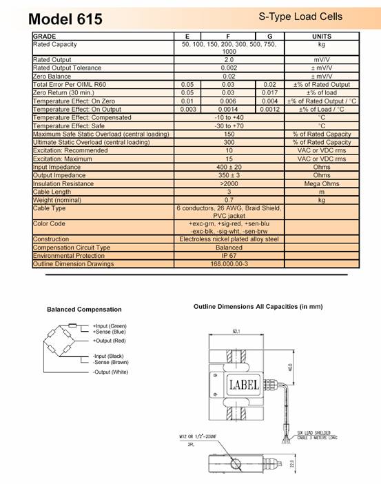 名稱:特迪亞615-1000kg,tedea 615-1000kg ,615-1000kg稱重傳感器