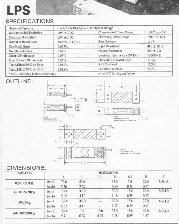 LPS-35kg,Celtron LPS-35kg稱重傳感器主要參數(shù):