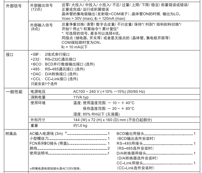 xTX廣州南創電子科技有限公司日本尤尼帕斯稱重儀表F701技術參數: