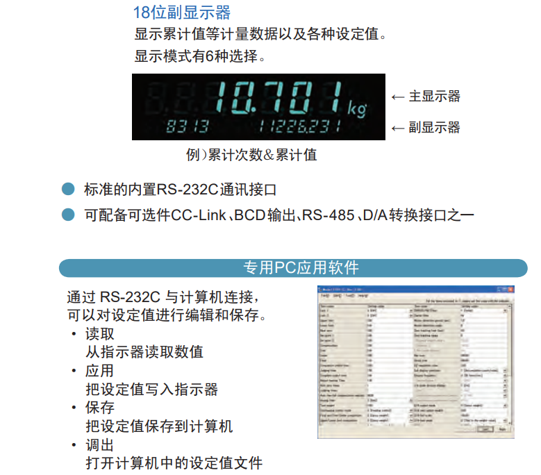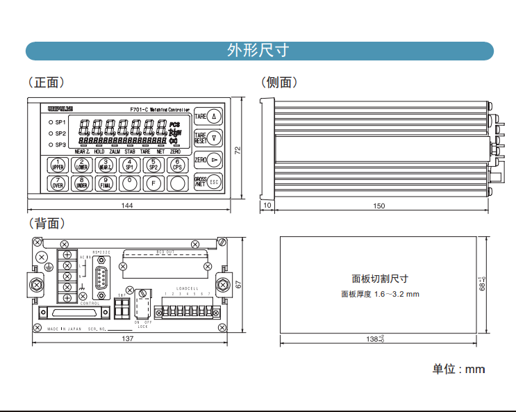 xTX廣州南創電子科技有限公司日本尤尼帕斯稱重顯示控制器F701顯示單位:t,kg,g,N,lb,無單位,可選