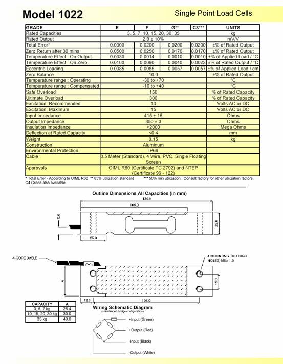 1022是為低成本稱重秤設計的單點式傳感器。其緊湊的外形尺寸以及較低的成本適用于零售秤、計價秤和計數秤。