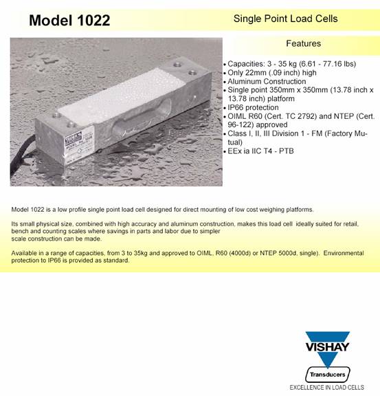 美國特迪亞TEDEA-HUNTLEIGH 1022-3kg稱重傳感器描述;