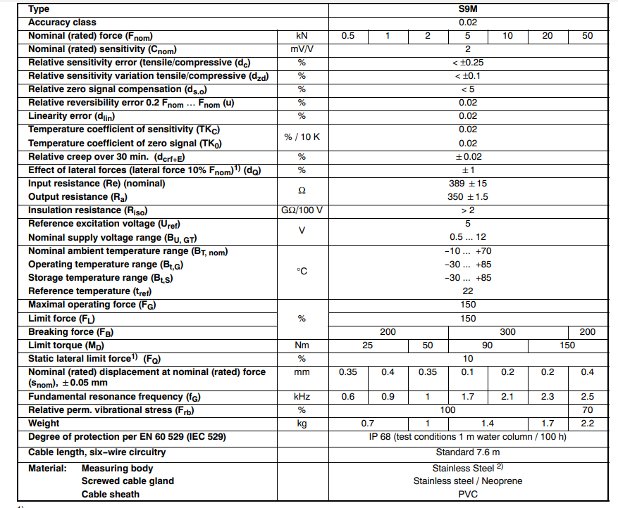 HBM S9M/10KN力傳感器型號類別技術參數選型安裝等資料信息,如果有關