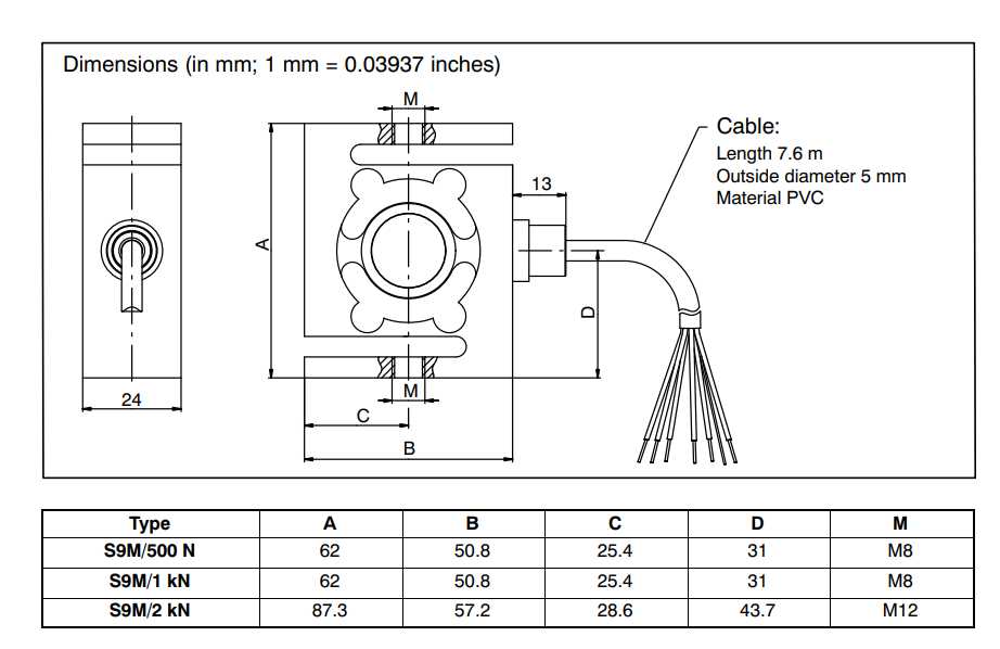LCt廣州南創電子科技有限公司德國HBM力傳感器S9M/0.5KN尺寸圖:LCt廣州南創電子科技有限公司