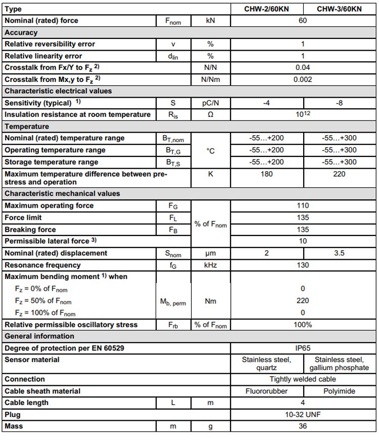 cHw廣州南創電子科技有限公司德國HBM力傳感器CHW-2/60KN產品技術參數:cHw廣州南創電子科技有限公司