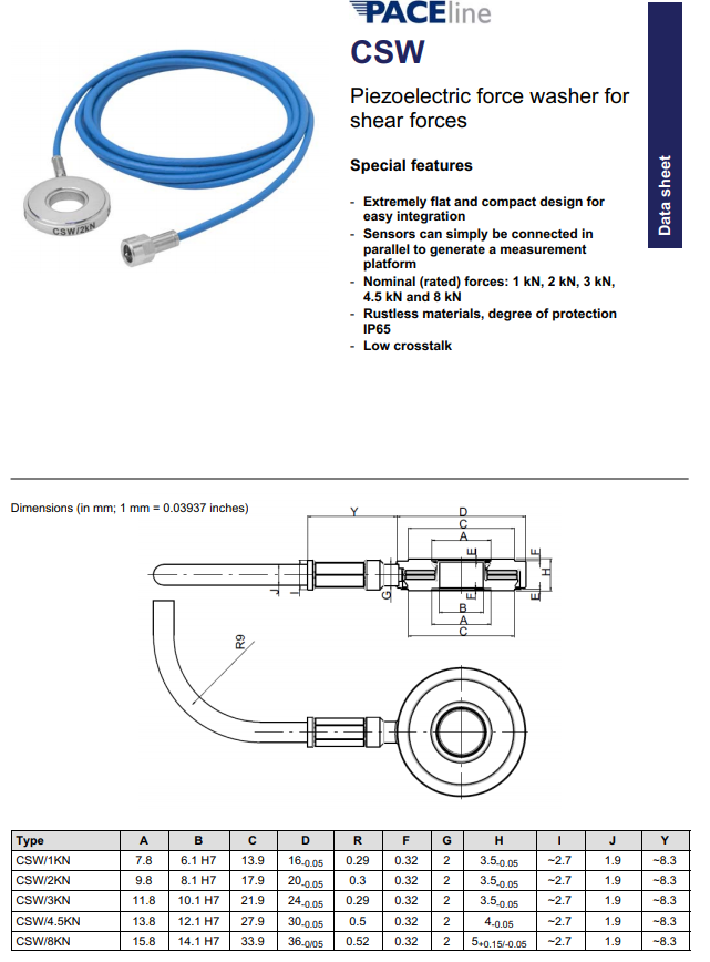 CSW用于剪切力的壓電微型負載墊圈PACEline CSW系列的壓電負載墊圈有助于可靠地測量剪切力。它的典型應用包括機械加工過程的力監測,如切削、銑削和車削,以及其他*監測任務。用于測量剪切力的PACEline CSW壓電微型負載墊圈:容量從1kn到8kn