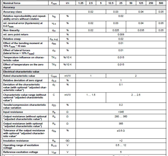 德國HBM力傳感器U10S/125kN產品技術參數:GXc廣州南創電子科技有限公司