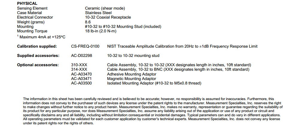 美國MEAS 7204A加速度計(jì)的其他產(chǎn)品型號(hào):