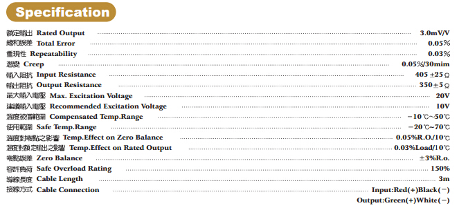 臺灣JIHSENSE LC稱重傳感器性能規格參考圖:v3x廣州南創電子科技有限公司