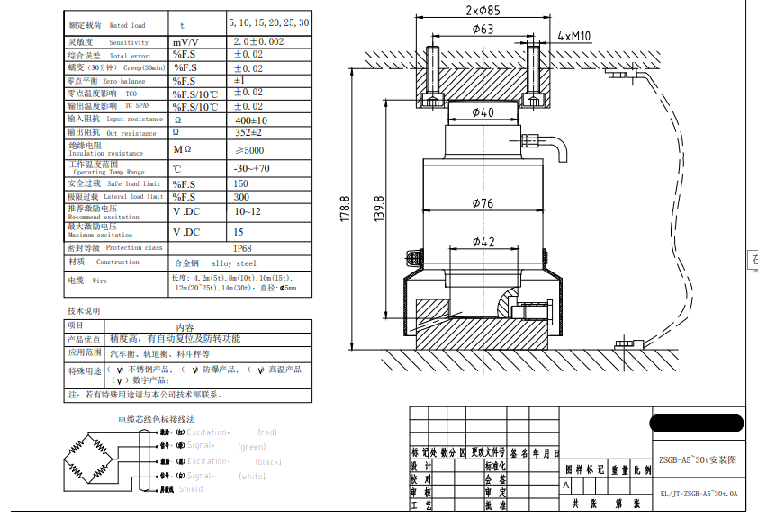 寧波柯力稱重傳感器ZSGB-A-5t產品技術參數及尺寸圖:0bD廣州南創電子科技有限公司