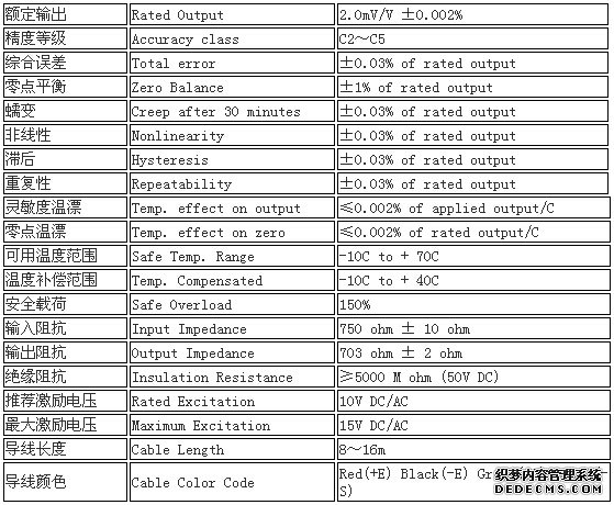 美國柯力QS-5t稱重傳感器主要參數:YeA廣州南創電子科技有限公司