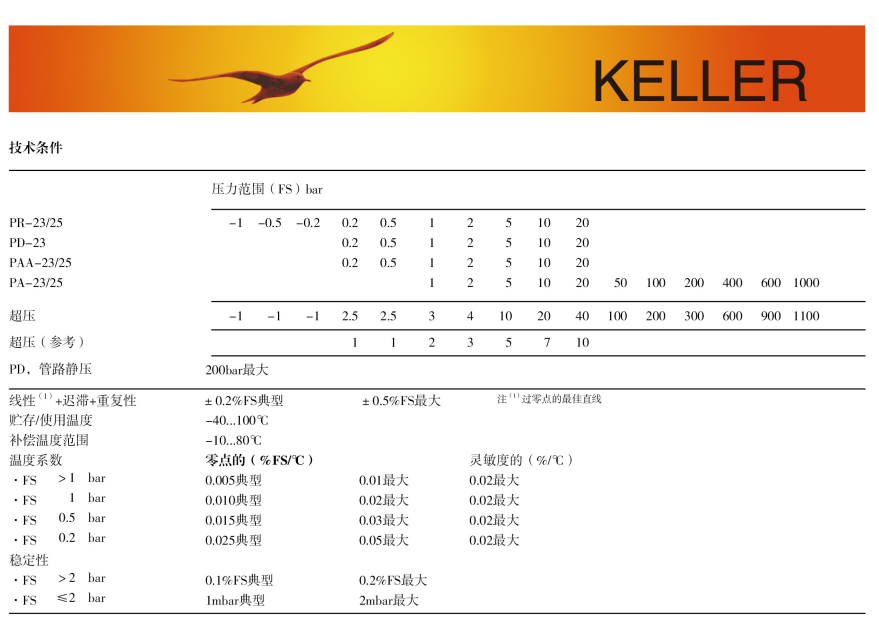 KWe廣州南創電子科技有限公司PA-23/25Ei KELLER壓力傳感器產品描述:KWe廣州南創電子科技有限公司全工作范圍