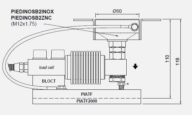 Weight module designed for tanks, hoppers, platforms, etc..; provided with a compression joint in AISI 304 stainless steel and rubber to compensate for misalignment of the support plates. Galvanized lower plate and screws. AISI 304 stainless steel upper plate.