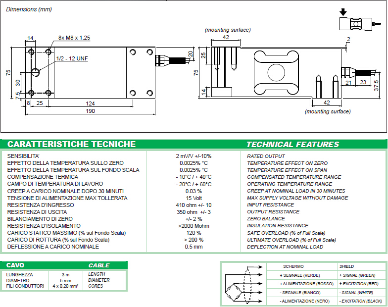 額定輸出:2 mV/V +/- 10%