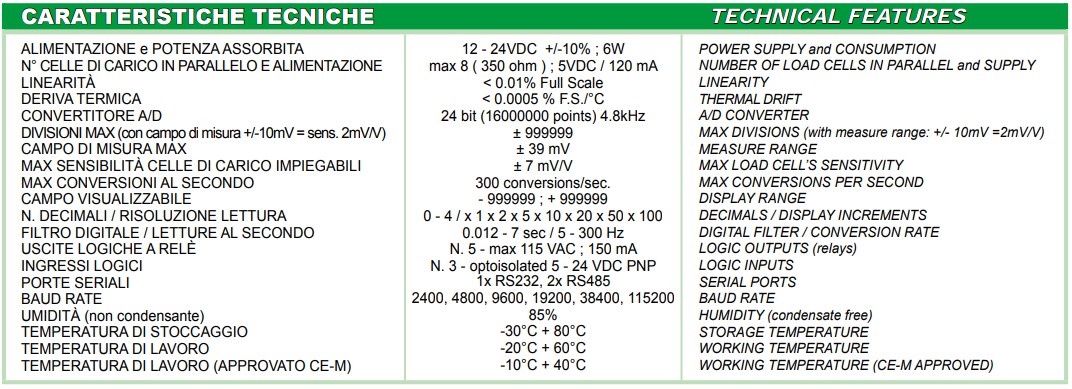 ABS重量指示器,尺寸為122 x 226 x 164毫米。IP40防護等級(D-SUB連接器)。19鍵薄膜鍵盤。46個指示燈符號。實時時鐘/日歷。可能的安裝方式:桌子,墻壁