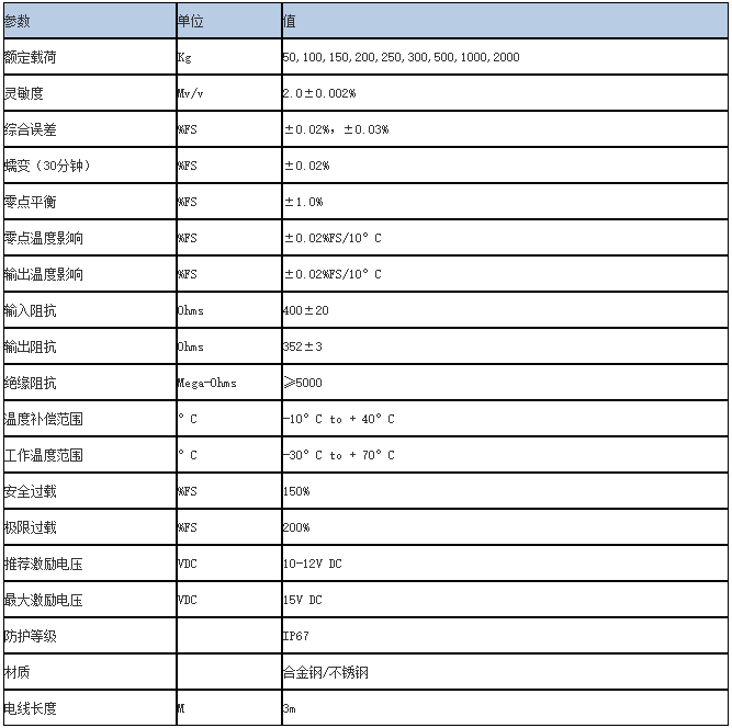 Uhd廣州南創電子科技有限公司柯力稱重傳感器量程有50,100,150,200,250,300,500,1000,2000(Kg)