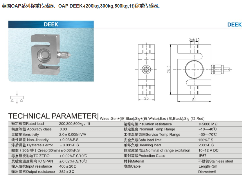 寧波柯力DEEK-500kg稱重傳感器特點:84k廣州南創電子科技有限公司
