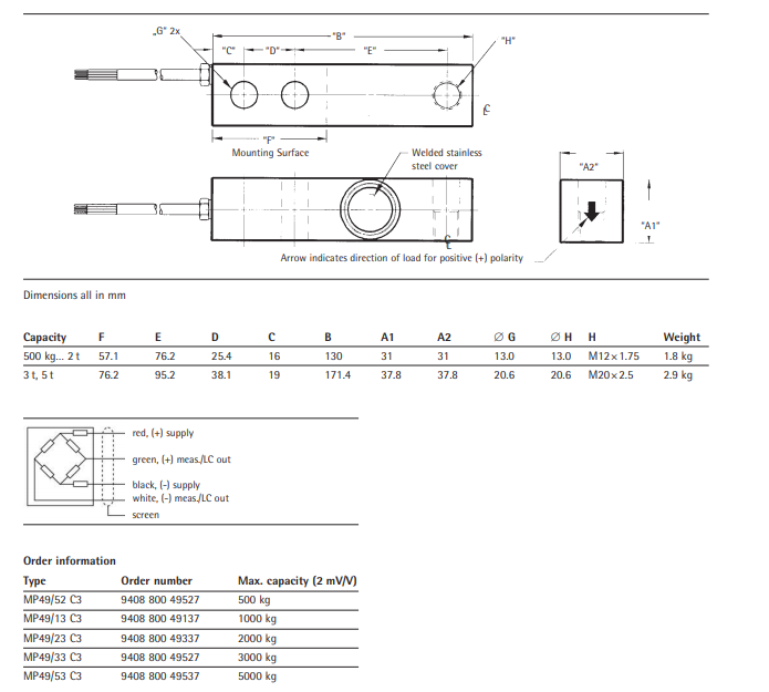 MP49/13 C3稱重傳感器Minebea Intec技術參數圖:uvX廣州南創電子科技有限公司