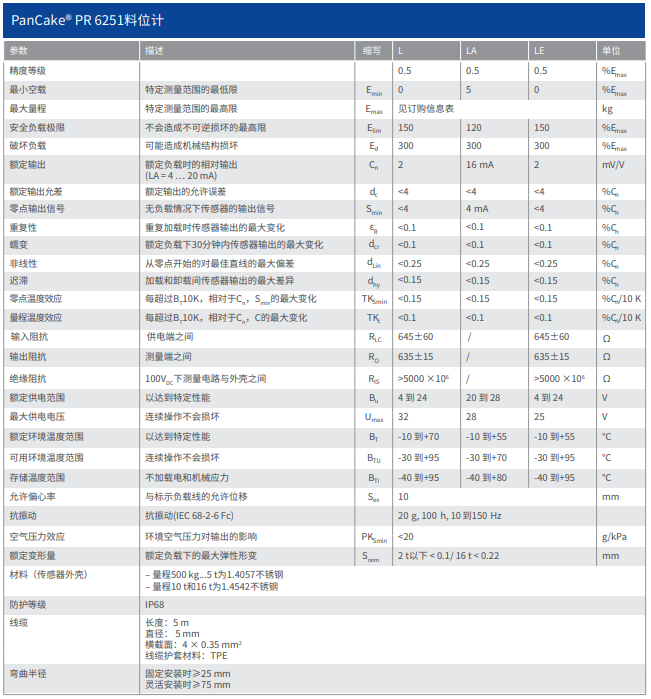 PR6251/52L稱重傳感器Minebea Intec技術參數圖:ojH廣州南創電子科技有限公司