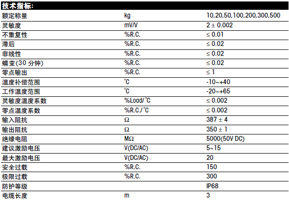 梅特勒托利多稱重傳感器MTB-300kg產品參數:COw廣州南創電子科技有限公司