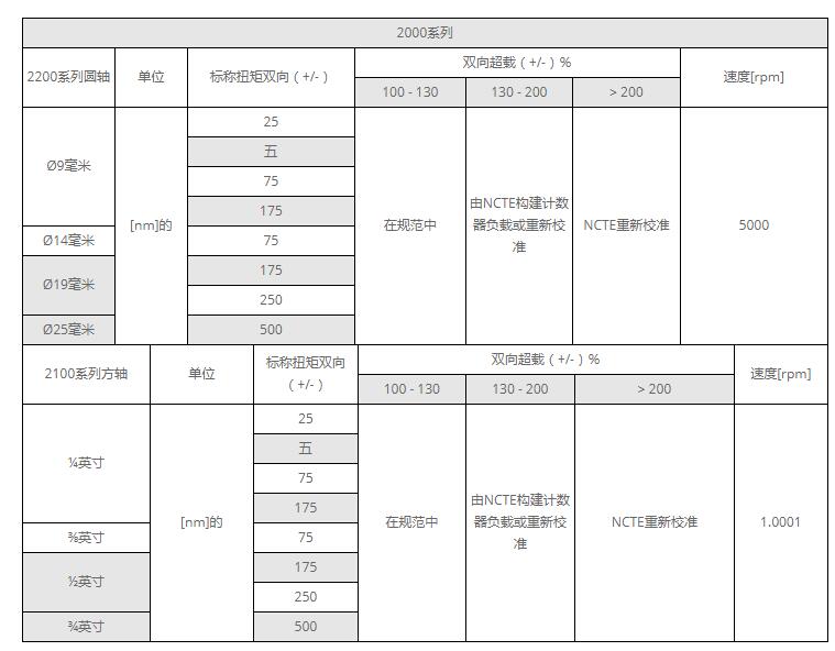 • 標題扭矩:2.5 Nm至500 Nm,雙向