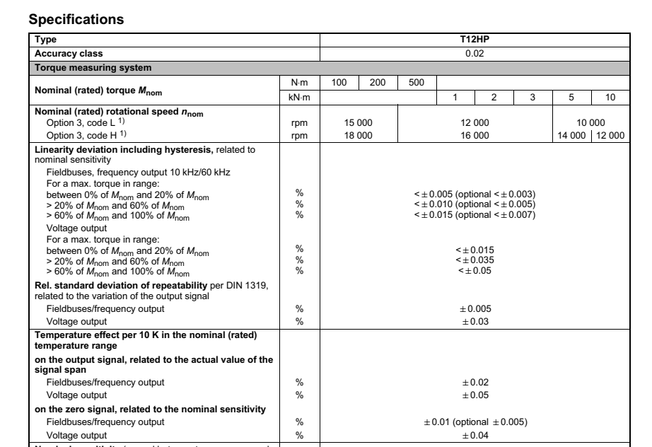 德國HBM T12扭矩傳感器技術(shù)參數(shù):