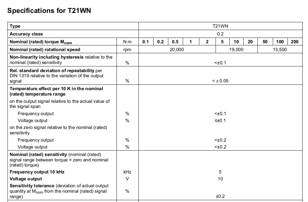 德國HBM T21WN扭矩傳感器技術參數:kG9廣州南創電子科技有限公司